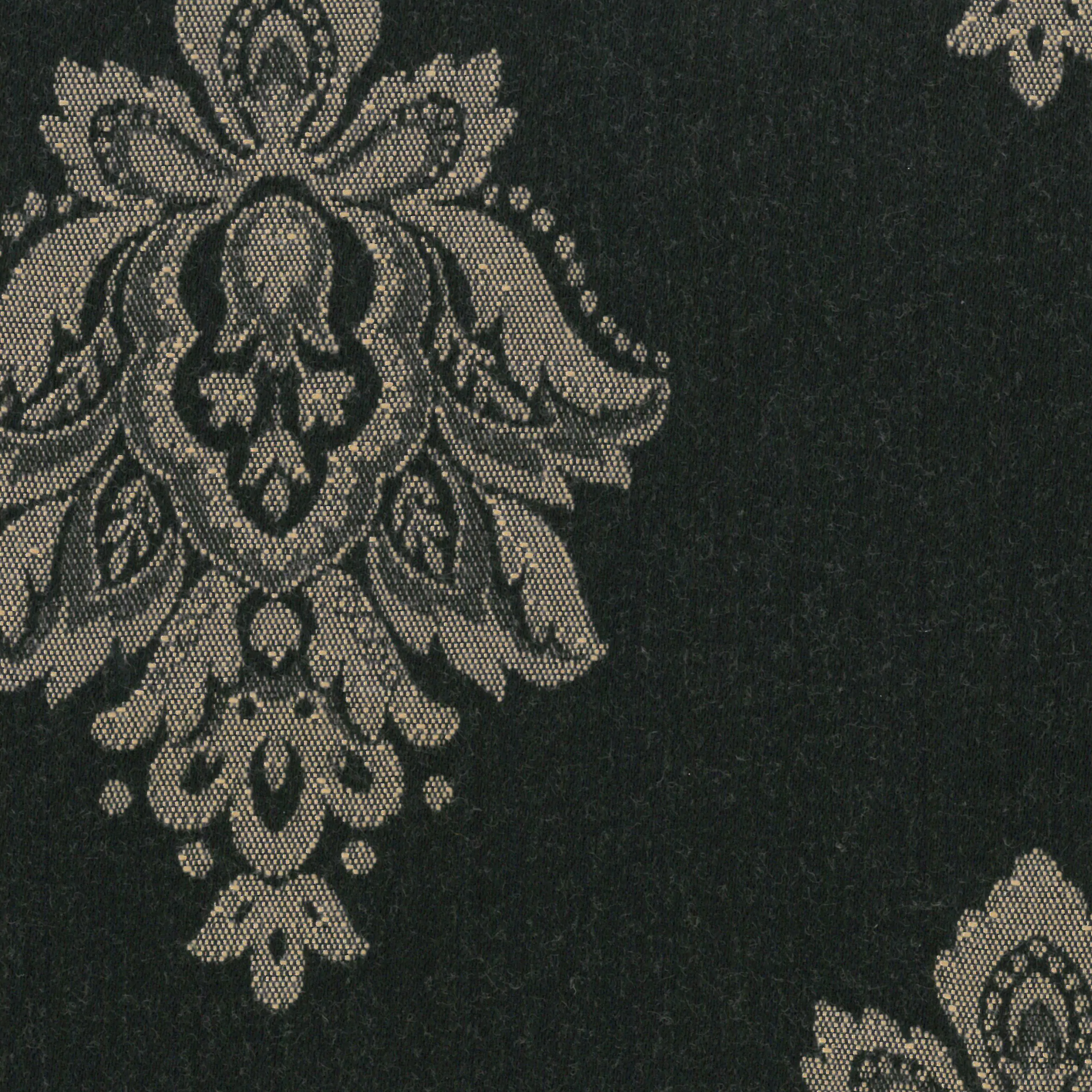 GIOVANNA Black to wysokiej jakości tkanina obiciowa (i dekoracyjna), zaprojektowany z myślą o nowoczesnych i klasycznych wnętrzach. występująca w sześciu klasycznych kolorach. Doskonale nadaje się na obicie mebli w stylu eklektycznym i historycznym, do użytku domowego. materiał tekstylny szczególnie polecana do renowacji antyków. Wraz z tkaninami Luigi, Paola, Silvia, Verdi tworzy kolekcję Verdi. Giovanna to materiał tekstylny żakardowa na meble domowe i dekoracje w powtarzający się klasyczny wzór palmetowy. Sprawdzi się zarówno w przestrzeniach mieszkalnych, jak i komercyjnych, gdzie liczy się estetyka oraz funkcjonalność.