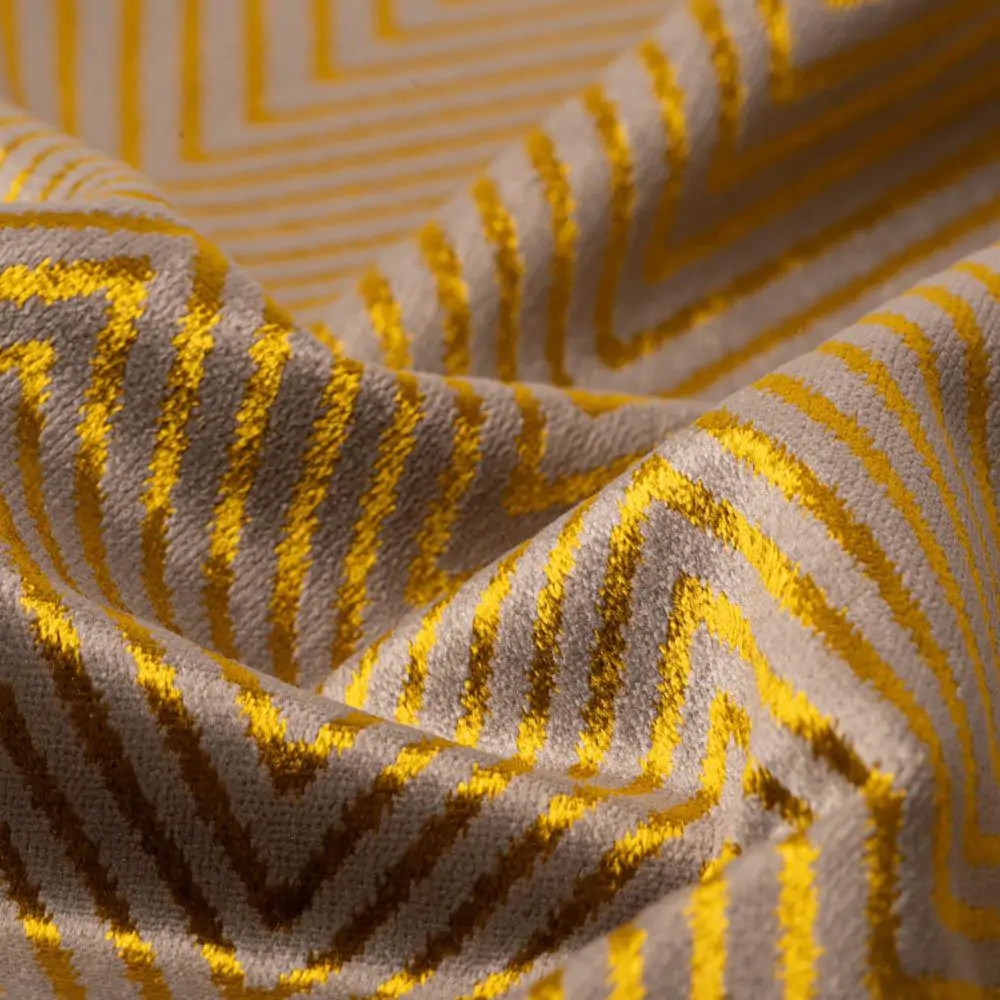 HERMINE Heliodorus-24 to wysokiej jakości tkanina obiciowa (i dekoracyjna), zaprojektowany z myślą o nowoczesnych i klasycznych wnętrzach. Atutem są również trendowe połączenia miedzi i złota ze szlachetnymi głębokimi odcieniami petrolu, błękitu oraz szarości. Wzór ten idealnie sprawdzi się w pomieszczeniach o stylu nowoczesnym i klasycznym. Hermine rekomendowany jest do użytku tapicerskiego, do uszycia poduszek i wałków. Może być łączony z innymi wzorami z kolekcji Modern classics oraz z gładkim welurowym koordynatem Henry FR. Hermine utrzymany jest w stylistyce Art Deco ze względu na elegancki połysk, geometryczną powtarzalność wzoru i dobór kolorystyczny. Sprawdzi się zarówno w przestrzeniach mieszkalnych, jak i komercyjnych, gdzie liczy się estetyka oraz funkcjonalność.