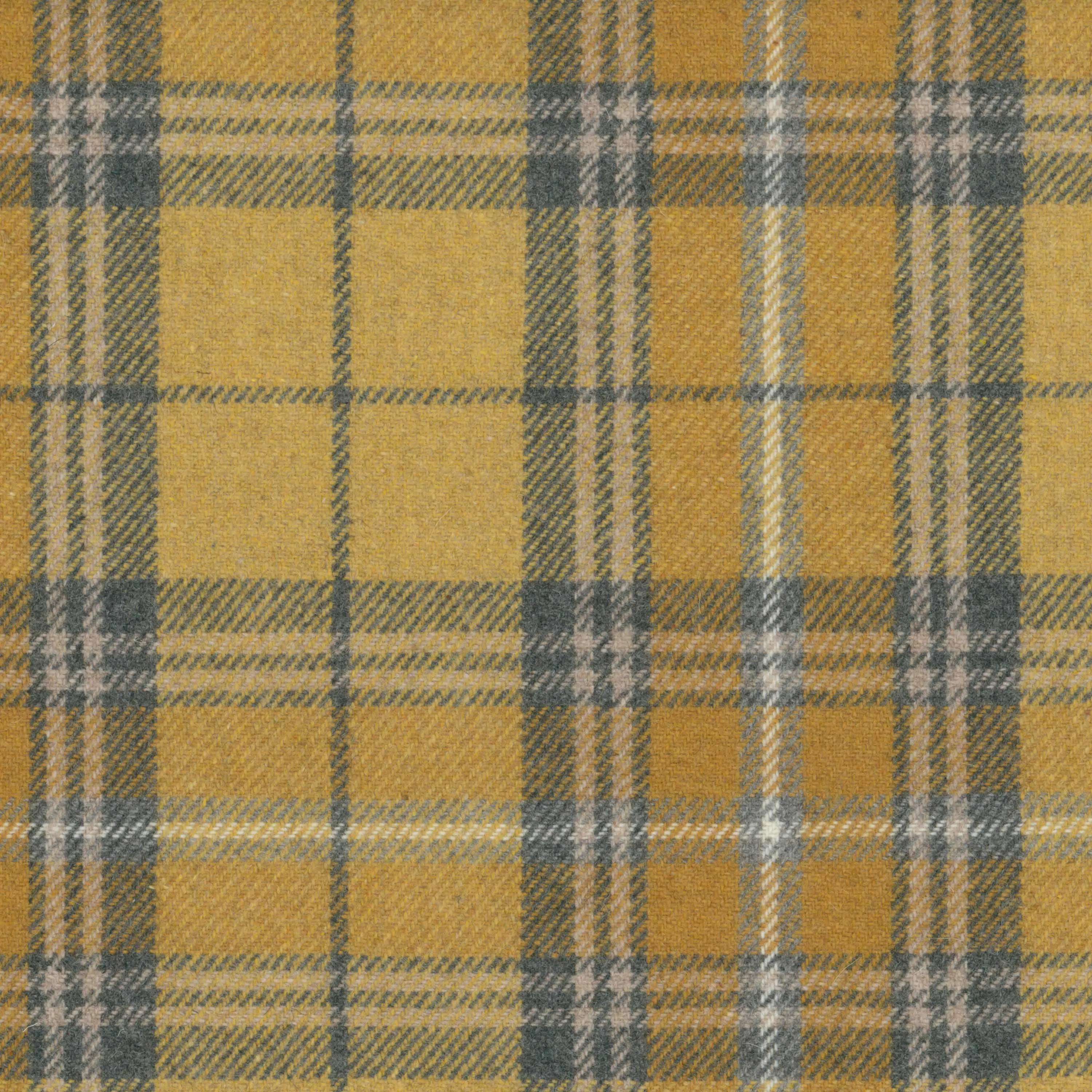 SHERLOCK Oil-Yellow-07 to wysokiej jakości tkanina obiciowa (i dekoracyjna), zaprojektowany z myślą o nowoczesnych i klasycznych wnętrzach. Można ją wykorzystywać do tapicerowania mebli, można z niej szyć poduszki, wałki, a także kotary i zasłony. Dzięki wysokiej zawartości wełny jest naturalnie trudnopalna. Wzór Sherlocka - duża, utkana z przędzy w 5 kolorach krata - wyraźnie nawiązuje do wzorów szkockich tartanów. materiał tekstylny występująca jest w 12 wariantach kolorystycznych, zarówno klasycznych, stonowanych, jak i bardziej nietypowych – z dominującym kolorem żółtym lub pomarańczowym. Pasuje do eleganckich, stylowych wnętrz, zwłaszcza nawiązujących do stylu angielskich klubów i gabinetów. Sprawdzi się także w rustykalnych, nieco surowych aranżacjach, w towarzystwie drewna, skóry i kamienia: np. w górskich pensjonatach, domach letnich, hotelach. Kraciasta materiał tekstylny z przewagą wełny z recyklingu w składzie o uniwersalnym zastosowaniu. Sprawdzi się zarówno w przestrzeniach mieszkalnych, jak i komercyjnych, gdzie liczy się estetyka oraz funkcjonalność.