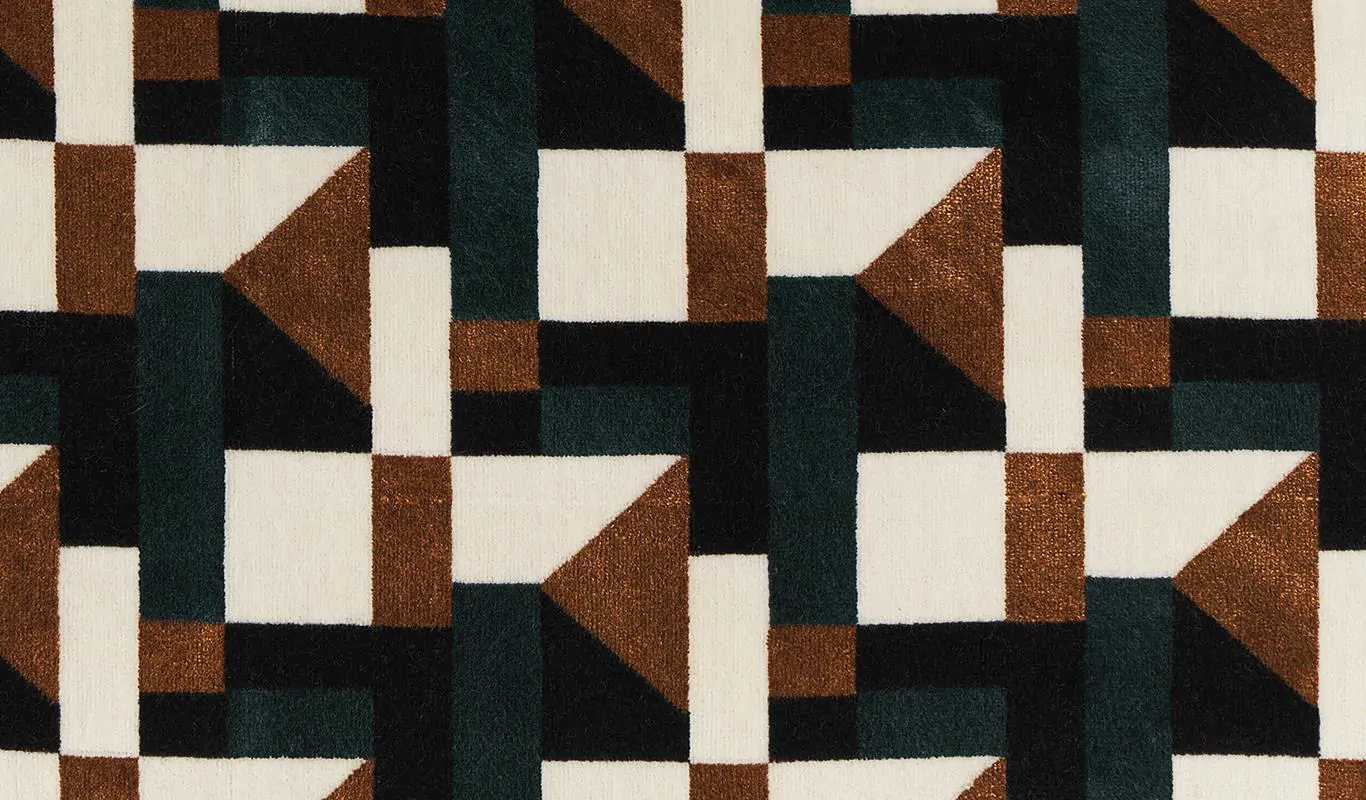 TEMPLE Brown-17 to wysokiej jakości tkanina obiciowa (i dekoracyjna), zaprojektowany z myślą o nowoczesnych i klasycznych wnętrzach. Regularnie powtarzające się kształty w kontrastowych kolorach dają wrażenie dynamicznego ruchu, świateł miasta oglądanych nocą z jadącego auta lub autobusu. materiał tekstylny ta jest wytrzymała, ma ciasny splot i mocny chwyt. Jej wzór w połączeniu z gamą kolorystyczną kolekcji Moquette skutecznie ukrywa wizualne oznaki zużycia. Złożony, geometryczny wzór tego welurowego żakardu przywołuje skojarzenia z nowoczesną architekturą i trójwymiarowymi fasadami budynków. Sprawdzi się zarówno w przestrzeniach mieszkalnych, jak i komercyjnych, gdzie liczy się estetyka oraz funkcjonalność.
