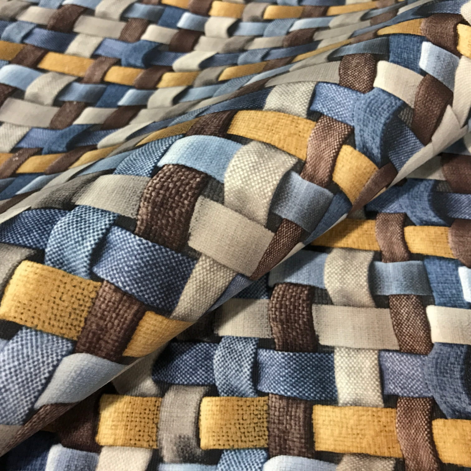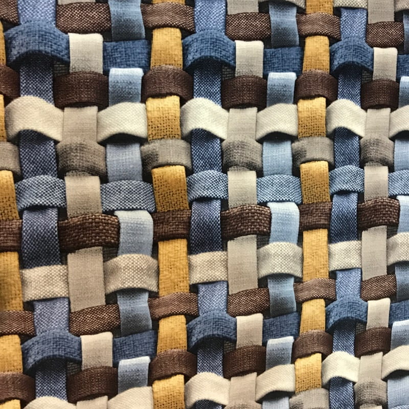 Tkanina nie jest zrobiona z pasków to kolorowy nadruk tworzy niesamowity głęboki efekt trójwymiaru. Zastosowanie: meble tapicerowane, krzesła, fotele, sofy itp. poduszki zasłony dekoracja Szerokość tkaniny 140 cm. Gładka tkanina welurowa z nadrukowanym wzorem 3D grubej plecionki.