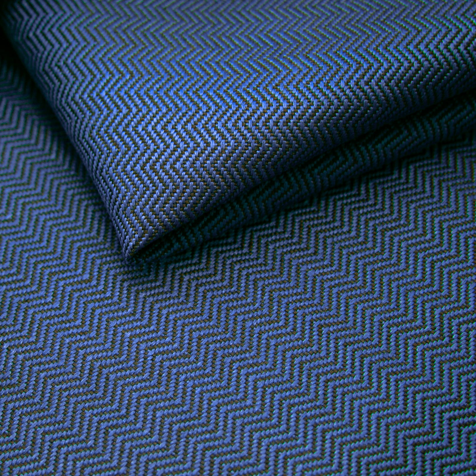 Tkanina obiciowa w wzór jodełki.